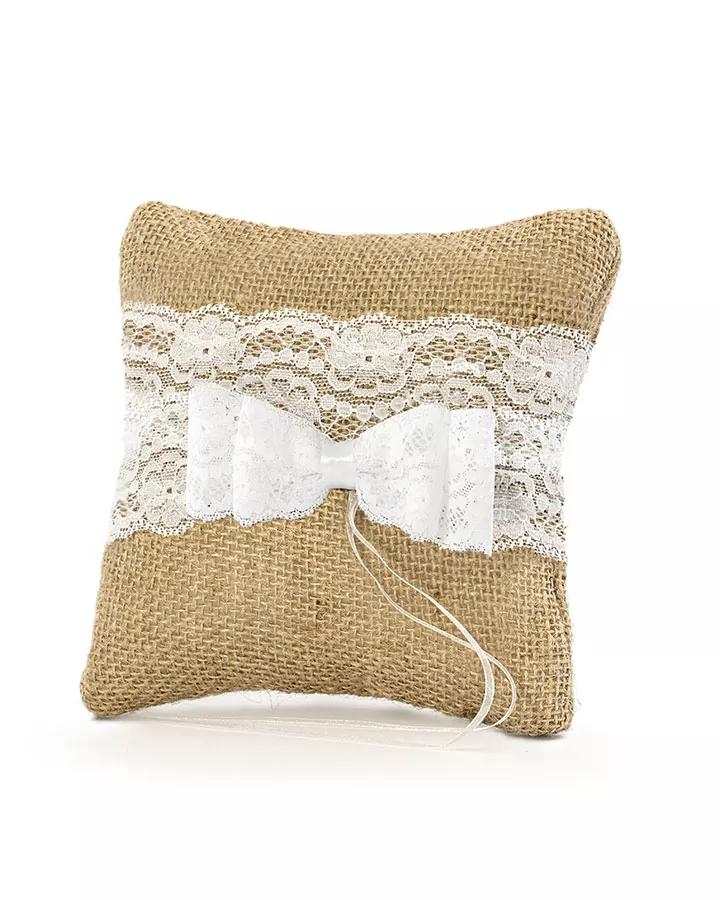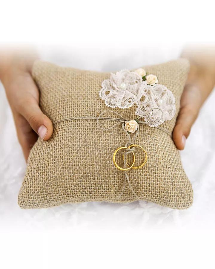 Jednoduchý jutový vankúš na svadobné obrúčky