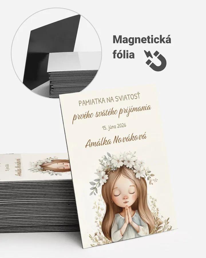 Originálny a trvácny darček pre vašich hostí. Pamätné magnetky s vlastným textom a fotografiou sú krásnou spomienkou na chvíle strávené s najbližšími. Ideálne ako drobnosť na pamiatku z oslavy jubilea, narodenia dieťaťa, krstu či detskej narodeninovej párty. Všetky magnetky ľahko zladíte s ostatnými tlačovinami v rovnakom motíve – od pozvánok až po etikety. Magnetky sú dostupné v dvoch praktických rozmeroch: 9 × 6 cm a 10 × 15 cm.