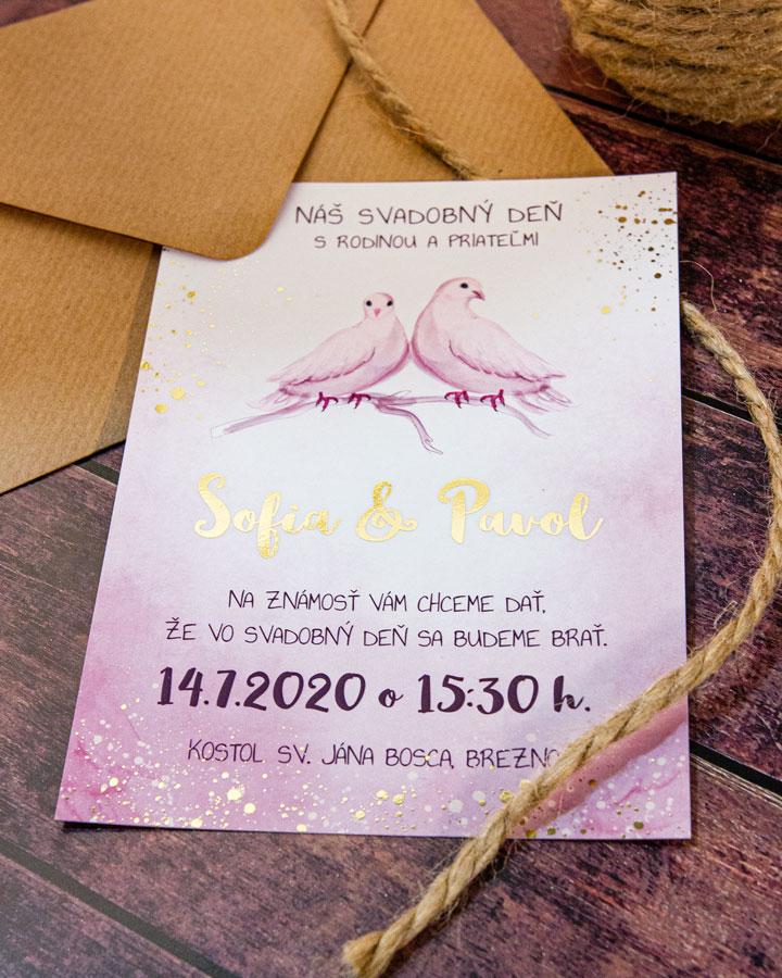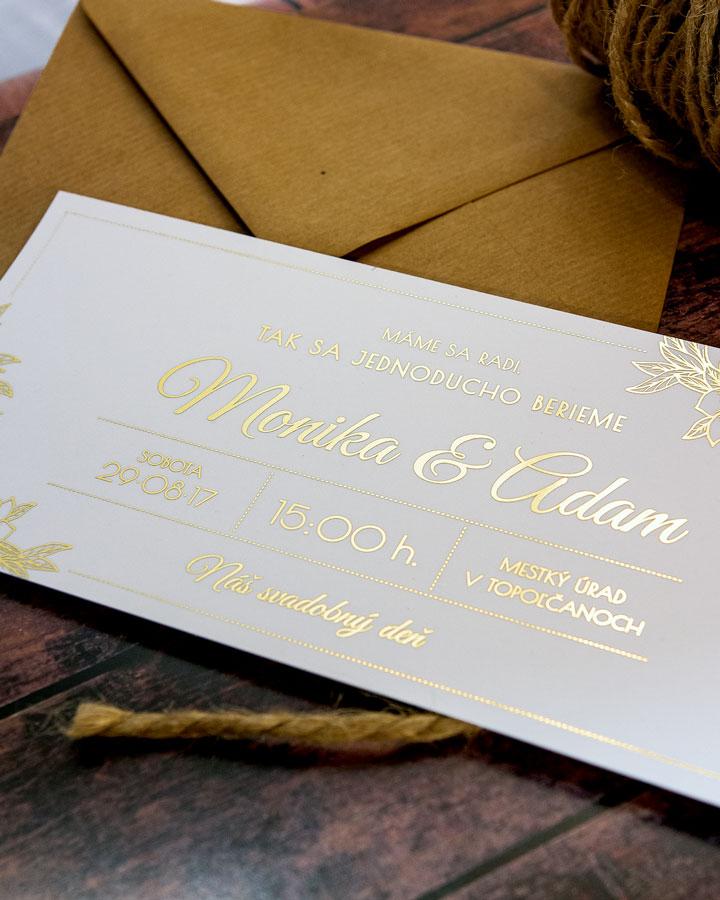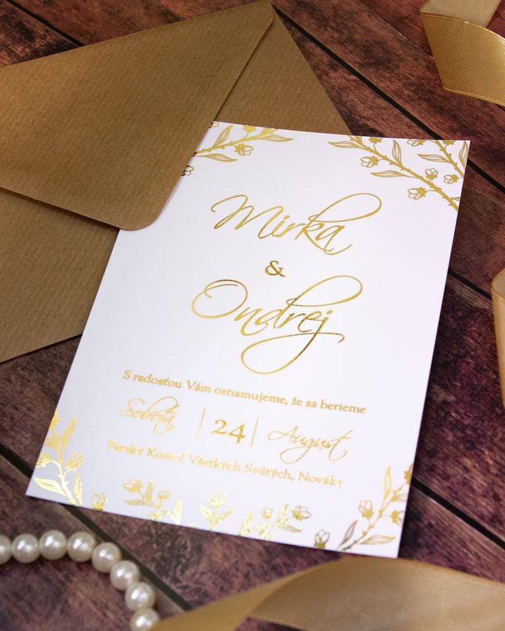 Rovnako veľmi radi vytlačíme aj váš vlastný motív svadobných tlačovín s metalickým efektom.