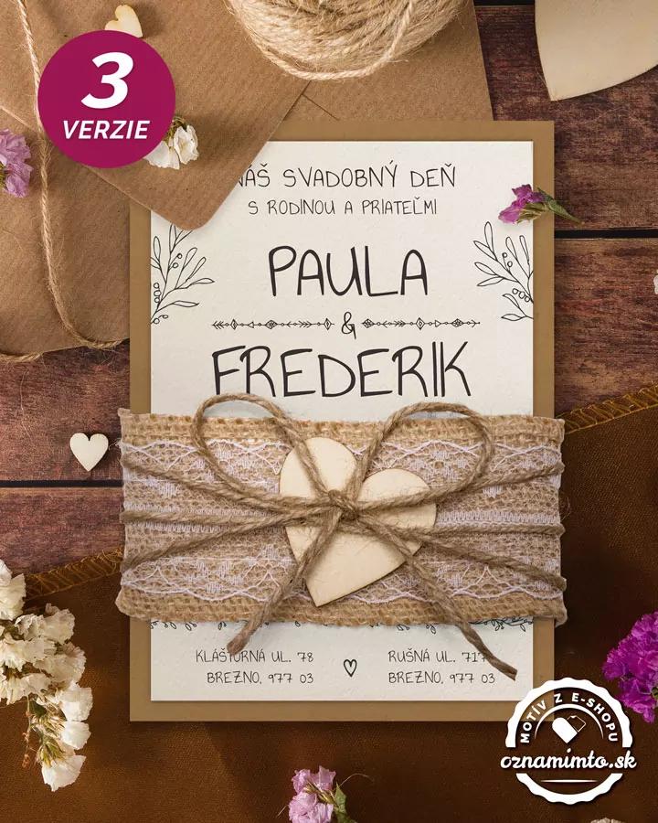 Svadobné oznámenia s čipkou a jutovým viazaním
