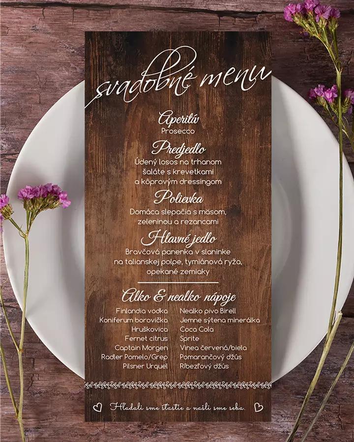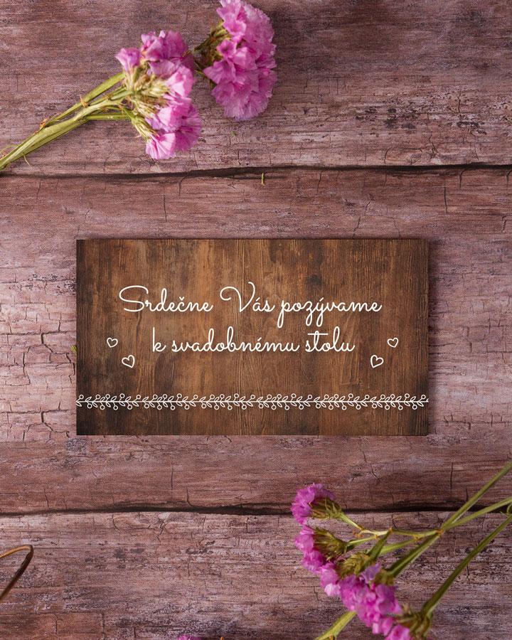 Ste aj Vy zástancom výroku, že v jednoduchosti je krása? Ak v tomto duchu plánujete aj svoju svadbu, upriamte pozornosť! Prinášame pre Vás veľmi jednoduché, ale stále vkusné svadobné oznámenie tvorené motívom tmavého dreva, ornamentmi a najmä fotkami Vás a Vášho partnera. Ak v tomto motíve využijete i ďalšie tlačoviny z našej ponuky, napríklad pamätné magnetky či menovky, všetko bude dokonalé.