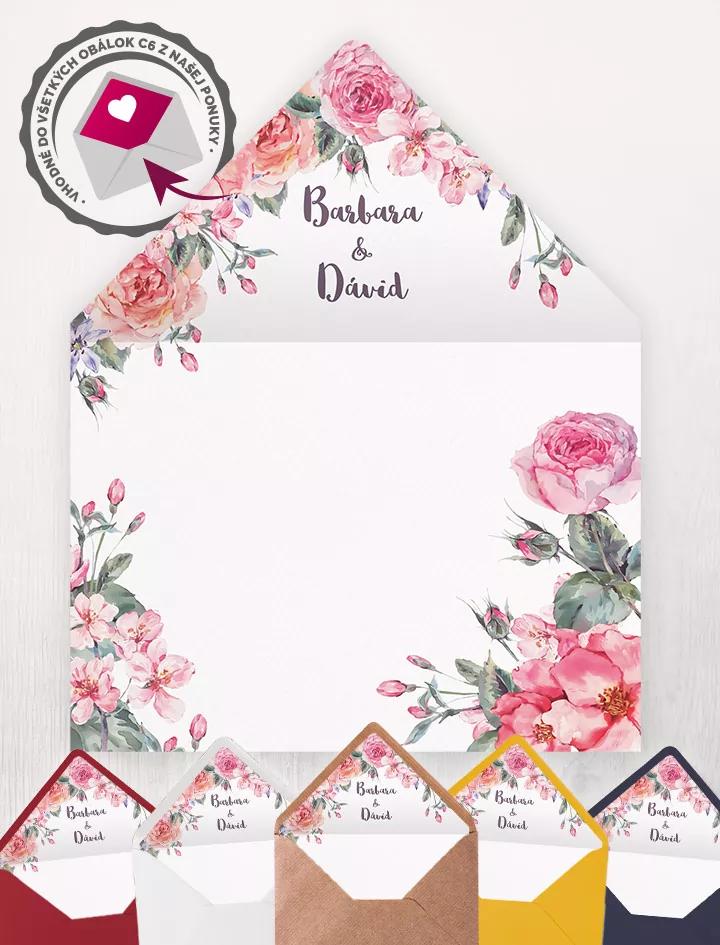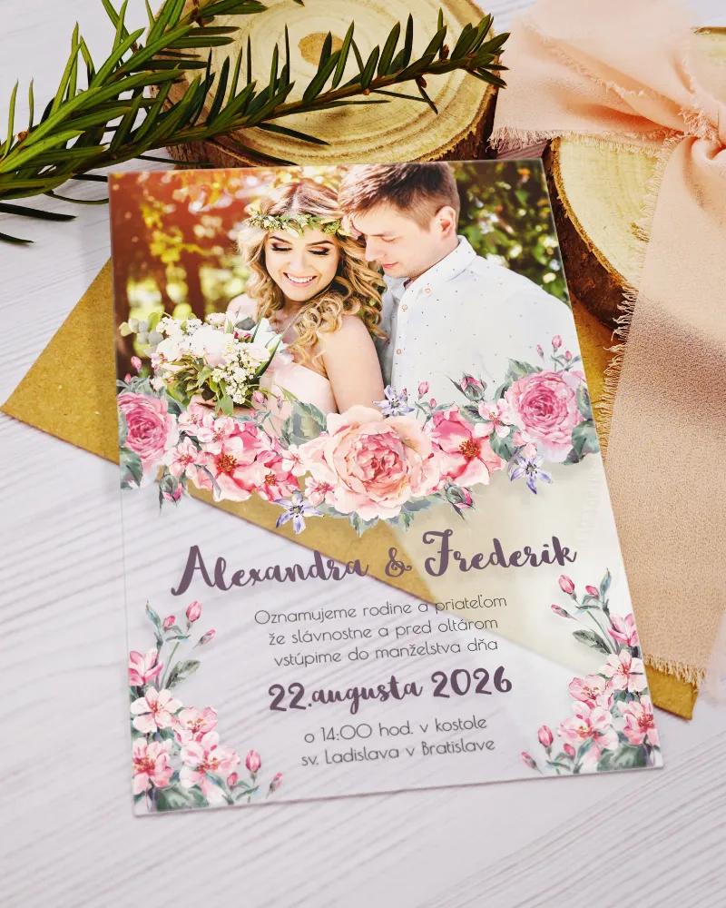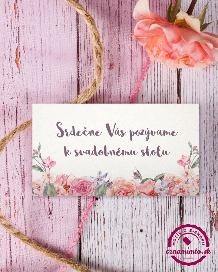 Ruže, ako symbol lásky, sú skvelým prvkom či už vo výzdobe, ale i v svadobnom oznámení, a preto Vám jedno takéto ponúkame. Biele pozadie, ružové ruže a nad nimi týčiaca sa fotka Vás a Vášho partnera je výbornou voľbou, ako pozvať hostí, aby Váš veľký deň oslávili spolu s Vami. Doplňte si u nás i ďalšie tlačoviny v rovnakom motíve a všetko bude dokonalé.