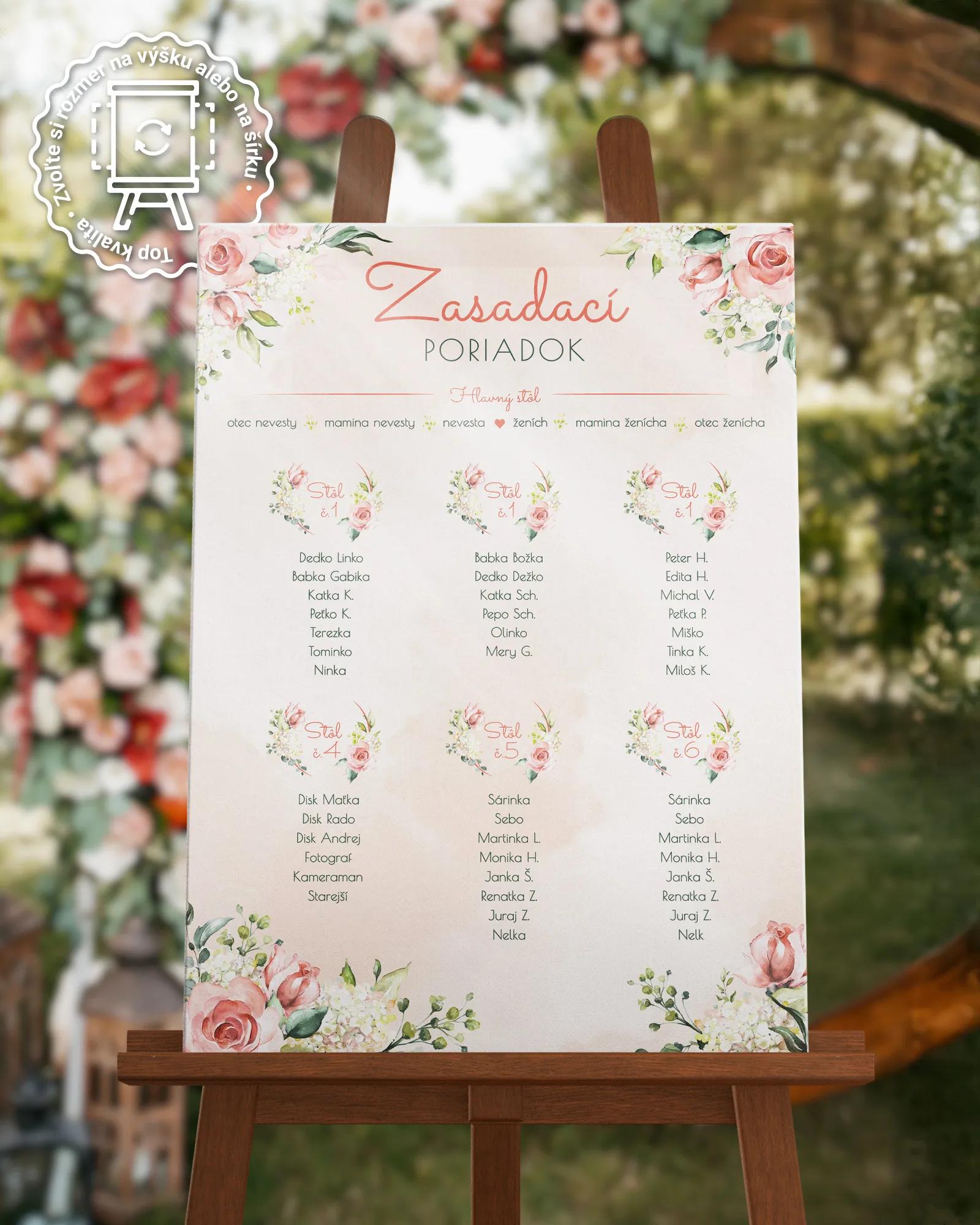 Svadobný zasadací poriadok vzor Kvitnúce ruže