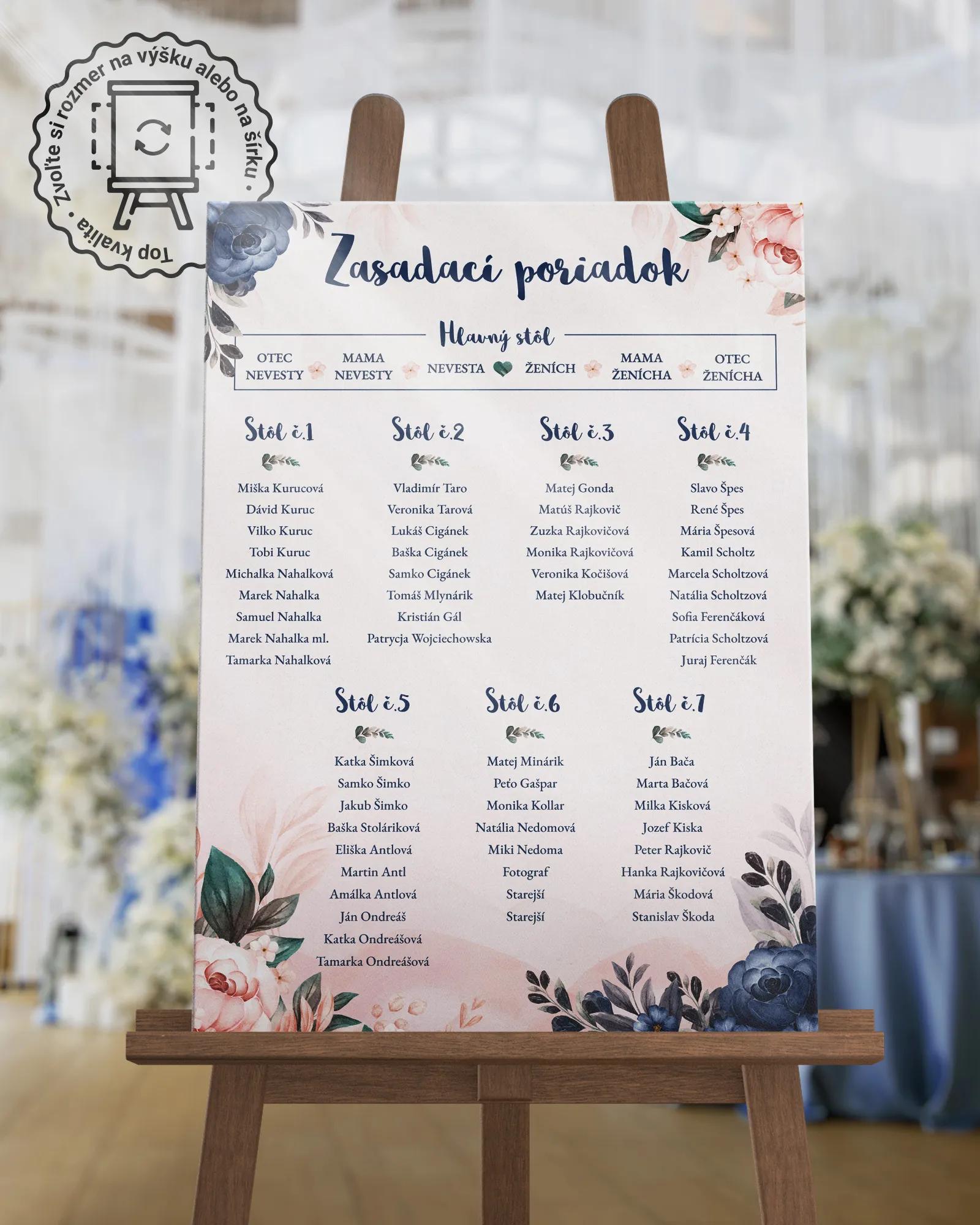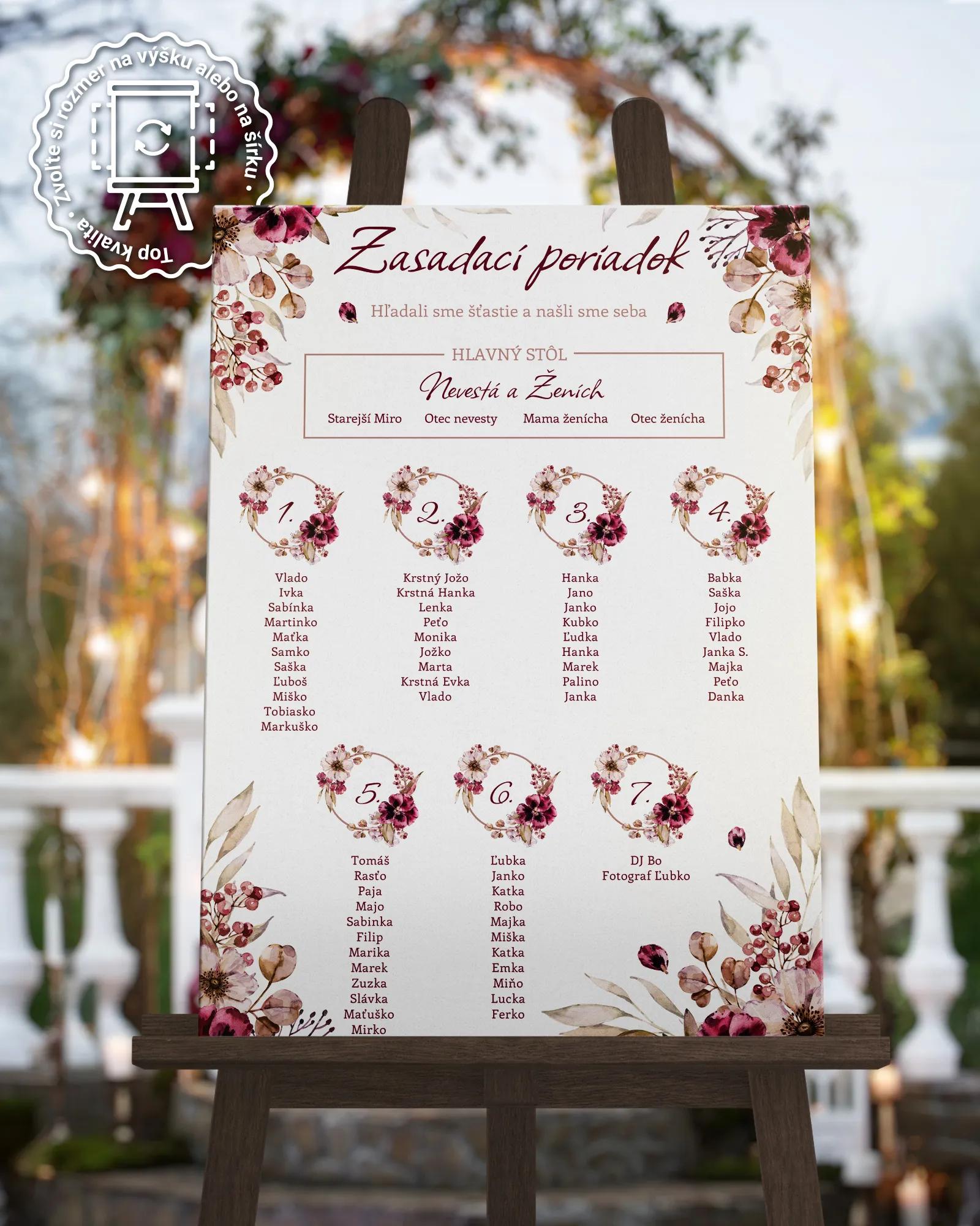 Svadobný zasadací poriadok vzor Kvetinový sen