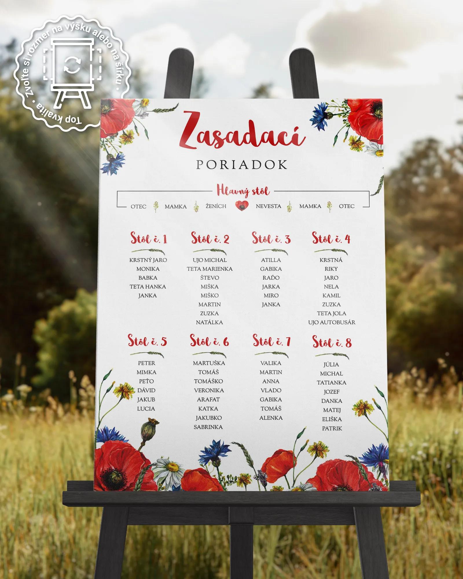 Svadobný zasadací poriadok vzor Poľné kvety 05