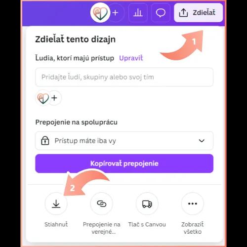 Následne už stačí len návrh uložiť cez tlačidlo Zdieľať vpravo hore a následne tlačidlo Stiahnuť…